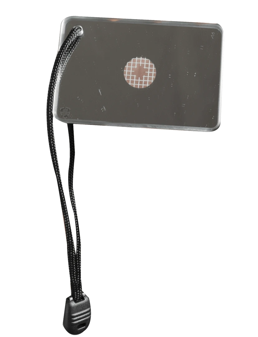 - Sighting hole with reflective screen that reflects sunlight for miles