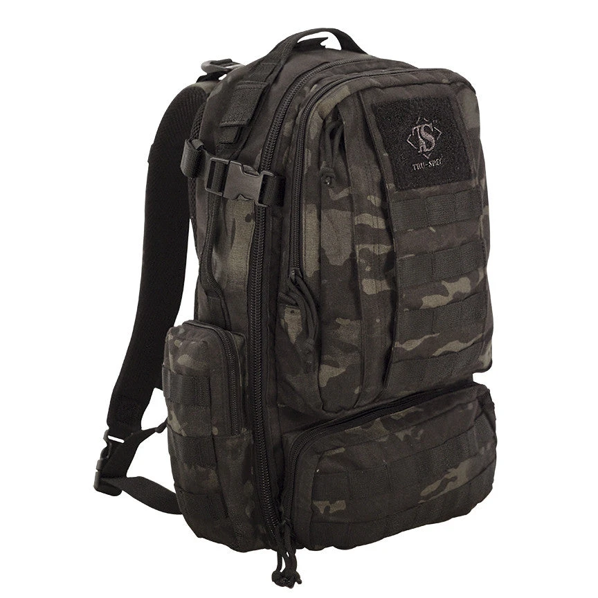 The perfect daily carry tactical backpack. Covered in exterior universal strapping for adding pouches and sporting multiple built-in zippered compartments and pouches, this pack can carry it all. Includes a hidden pocket in the lower back pad that is perfect for concealing your weapon, documents or other valuables.;