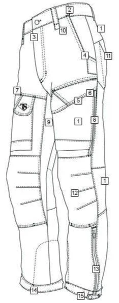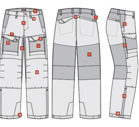 - Durable double weave fabric on the hip yoke, back of the knees and front cargo pockets