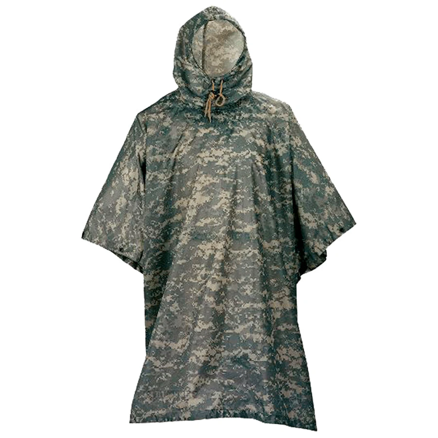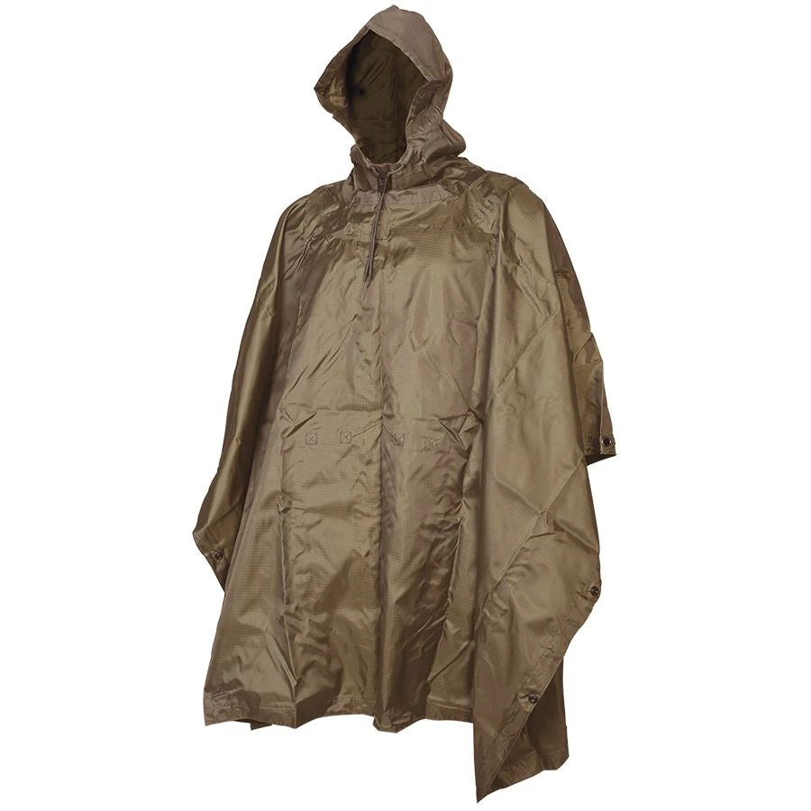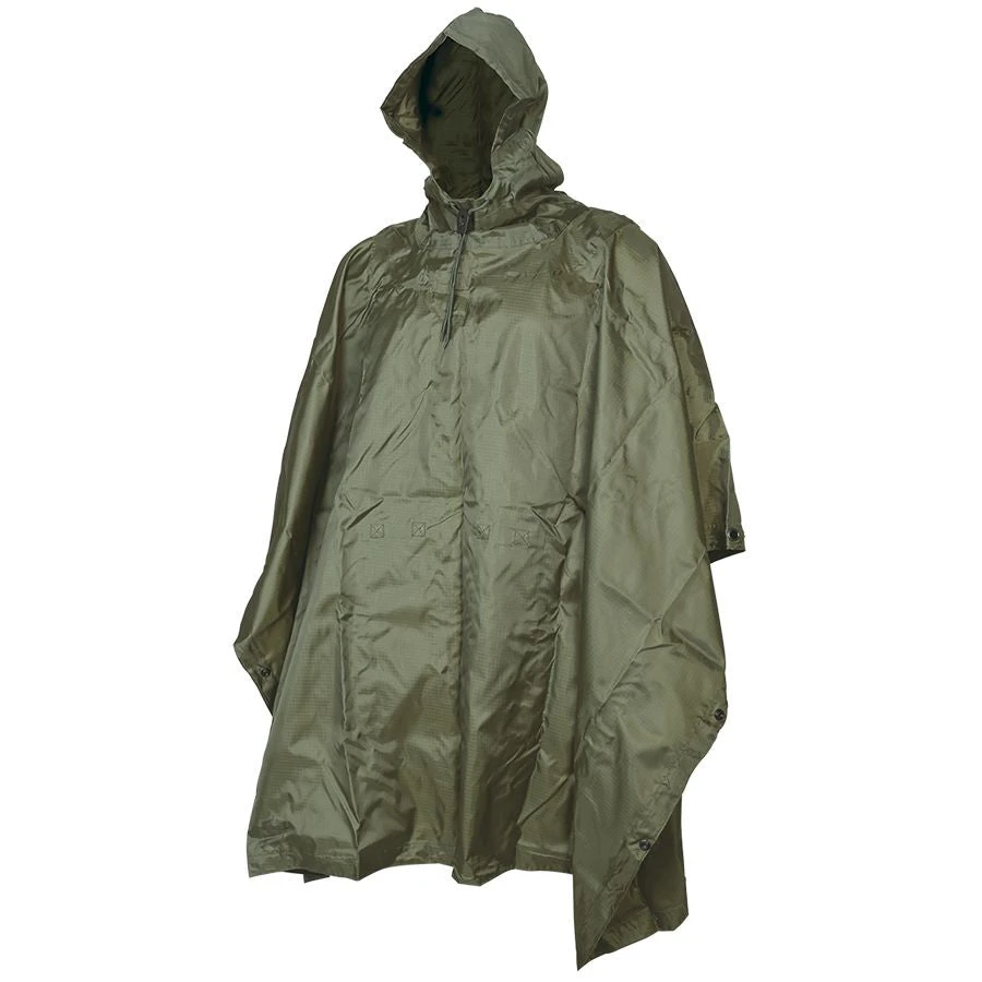 These 5ive Star Gear GI Spec Military Rip-Stop Ponchos are the ideal military style poncho that features a heavyweight, durable waterproof rip-stop material. The poncho has built in snaps on each side for increased protection from the elements along with grommets in each corner that allows for use as an emergency shelter. Can also be used a ground cover and comes with stuff sack for storage.