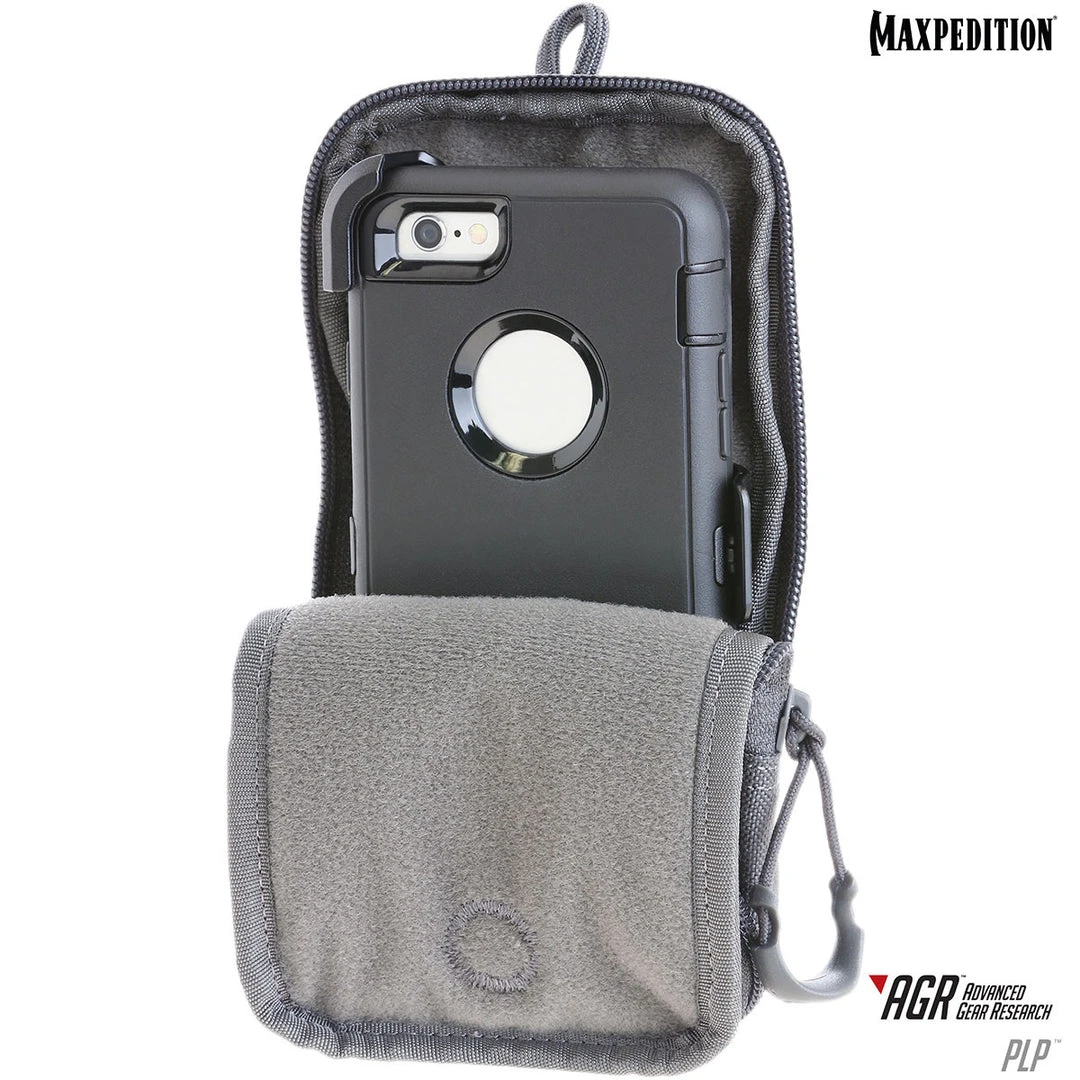 AGR Advanced Gear Research: PLP iPhone 6s Plus Pouch. The PLP iPhone 6s Plus Pouch comfortably fits your phone and protects it with a padded felt interior. It is sized to fit through a belt loop or attach to a pack. It comes with one TacTie® PJC3 Polymer Joining Clip for modular attachment to any AGR or legacy pack.