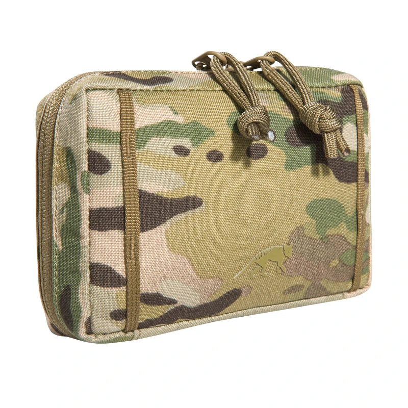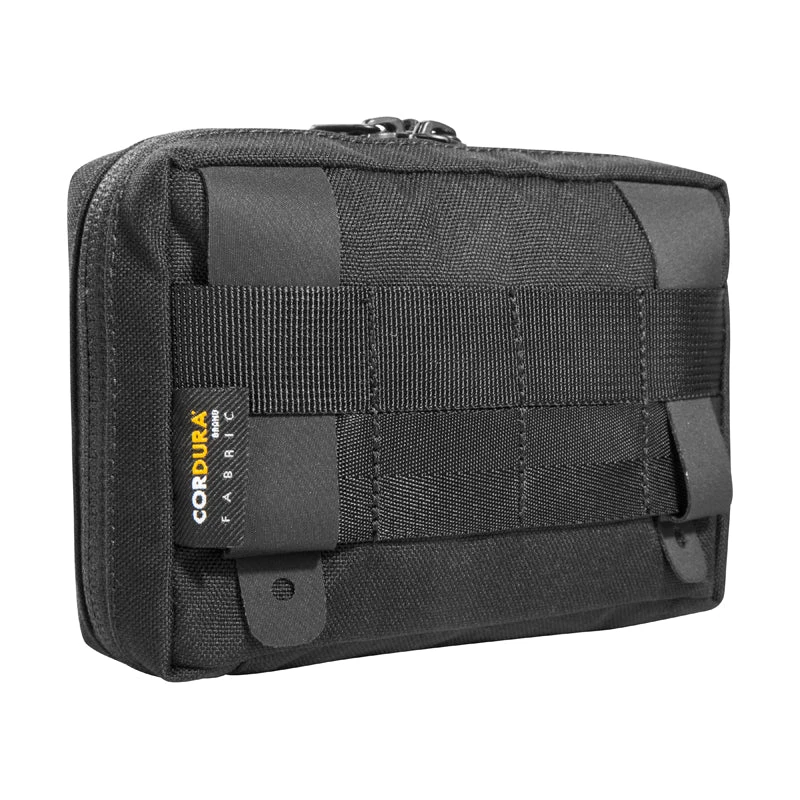 Accessory pouch with a large opening and the MOLLE reverse system. The inside features are a mesh pocket and elastic loops.