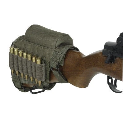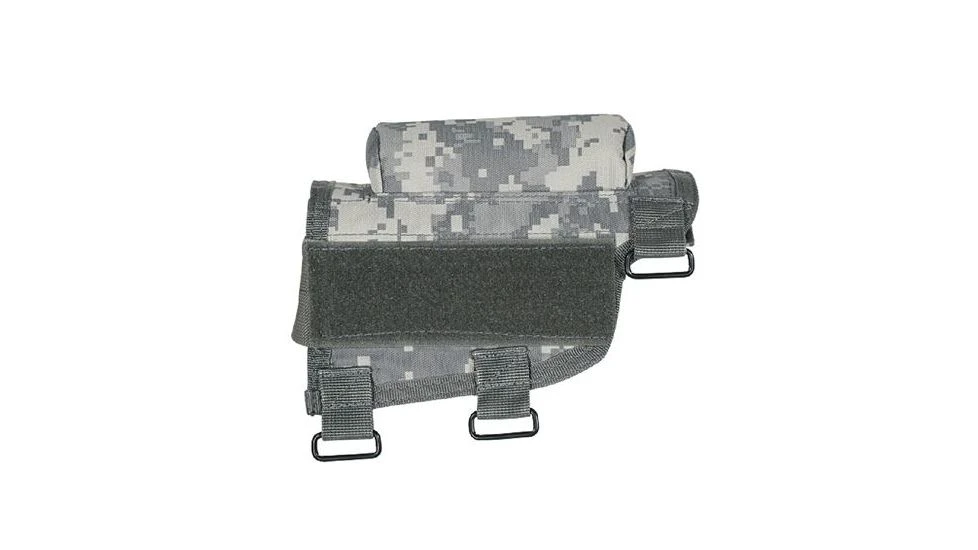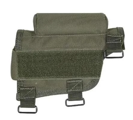 The Voodoo Tactical Buttstock Cheek Piece has a triple strap adjustment and an ambidextrous design. Removable center pad to lower eye relief. Removable covered 7 round ammo carrier for .308 or 300 win mag.
